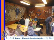 101. Kotvácká sedmdesátka - 12.2.2012 12. únor 1942... den, kdy v Plzni vzniká klub Pirátů, který se po skončení války hlásí k ideálům skautingu a jako oddíl vodních skautů Kotva je prvním organizovaným oddílem obnoveného Junáka v Plzni. Od té doby uplynulo dlouhých sedmdesát let, oddíl prošel obdobími slávy i úpadku, ale stále žije... Na připomenutí tohoto výročí jsme uspořádali malou výstavu a stejnojmenný event, kdy jsme na klubovně strávili příjemný večer. místo kroniky je lepší listing eventu a fotogalerie |